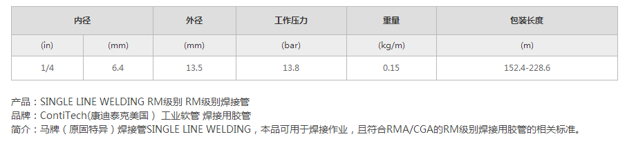 用途:本品可用于焊接作業(yè),且符合RMA/CGA的RM級別焊接用膠管