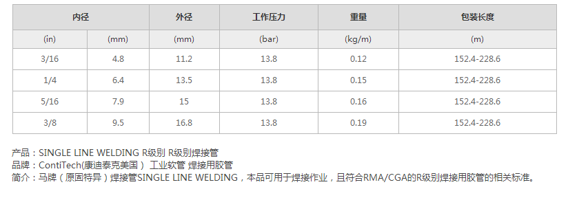 用途:本品可用于焊接作業(yè),且符合RMA/CGA的R級別焊接用膠管