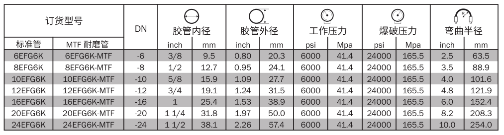 超耐磨外膠層 MTF(MegaTuff):適用于頻繁摩擦的工況且無需使用彈簧或尼龍護(hù)套,耐臭氧、紫外