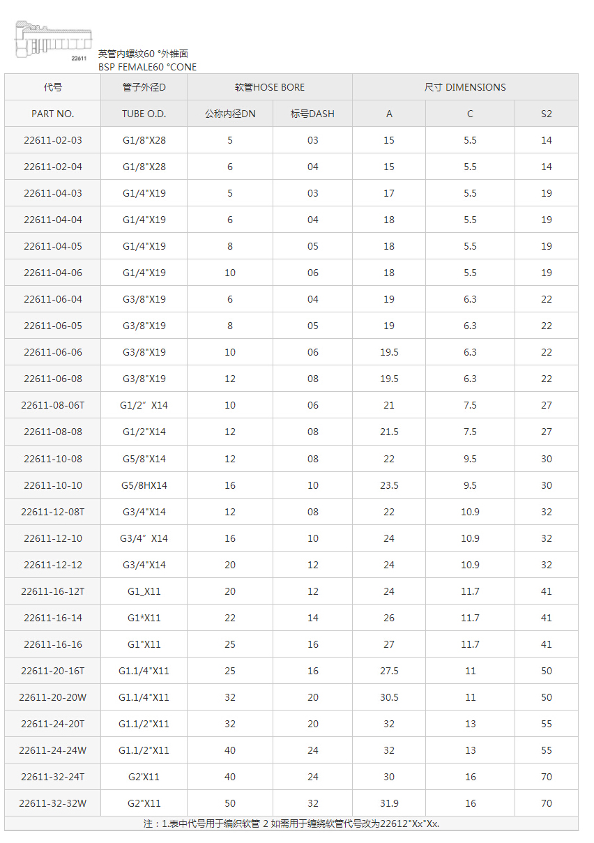 英管內(nèi)螺紋60°外錐面22611系列