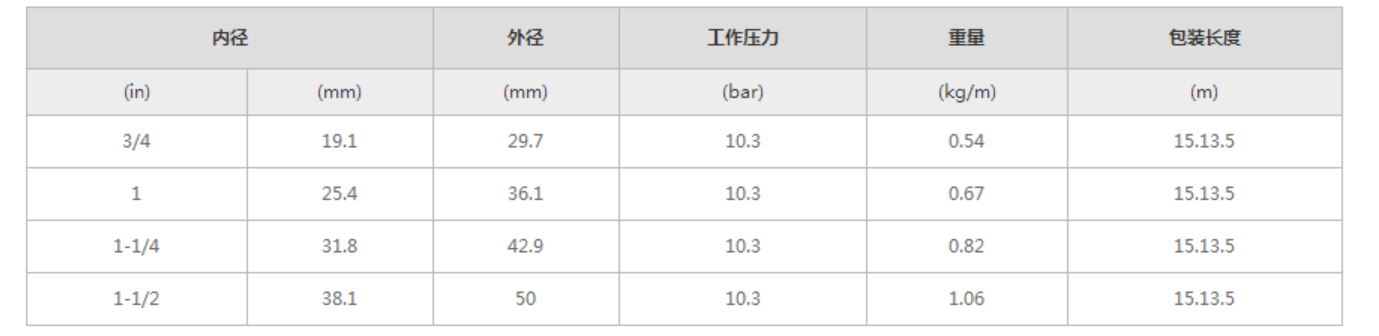 外層:黑色Plioflex合成橡膠(環(huán)裹壓?。?商峁в芯G色或白色的管外層的產(chǎn)品種類(本品并非符合FDA標(biāo)準(zhǔn)的產(chǎn)品)