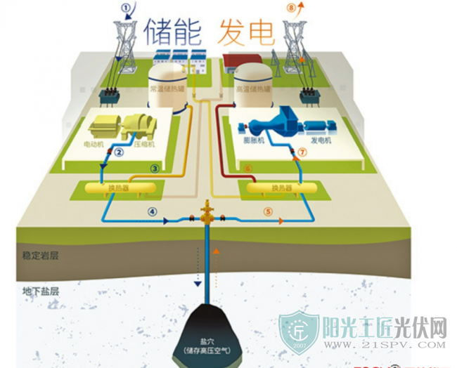 “在用電低谷時把空氣壓縮,存儲在地下鹽穴,完結(jié)一次充電的周期為8小時;在用電頂峰時,開釋高壓空氣,每小時能發(fā)電6萬千瓦時,能夠接連發(fā)電5個小時,發(fā)電量可達30萬千瓦時。”韓月峰介紹。